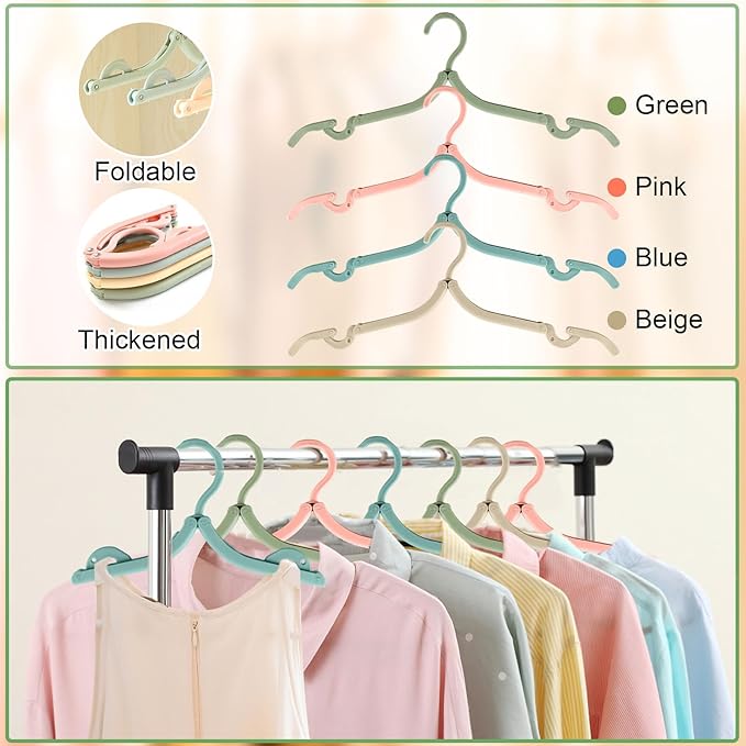 - 20 Pcs Travel Hangers: Package includes 5 x blue foldable travel hangers, 5 x beige foldable travel hangers, 5 x pink foldable travel hangers, and 5 x green foldable travel hangers. Sufficient quantities and colors can meet your daily use and replacement needs