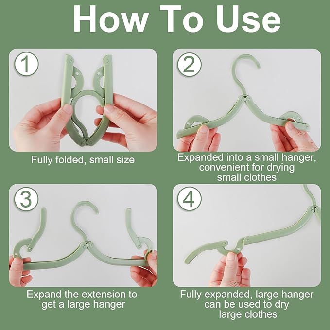 - Easy To Use: Foldable travel hangers have 3 folding sections. Fully open, half open, and fully folded. Fully open form can be utilized to hang normal clothes, if you want to hang small clothes such as baby's clothes or underwear, just choose the half-open form