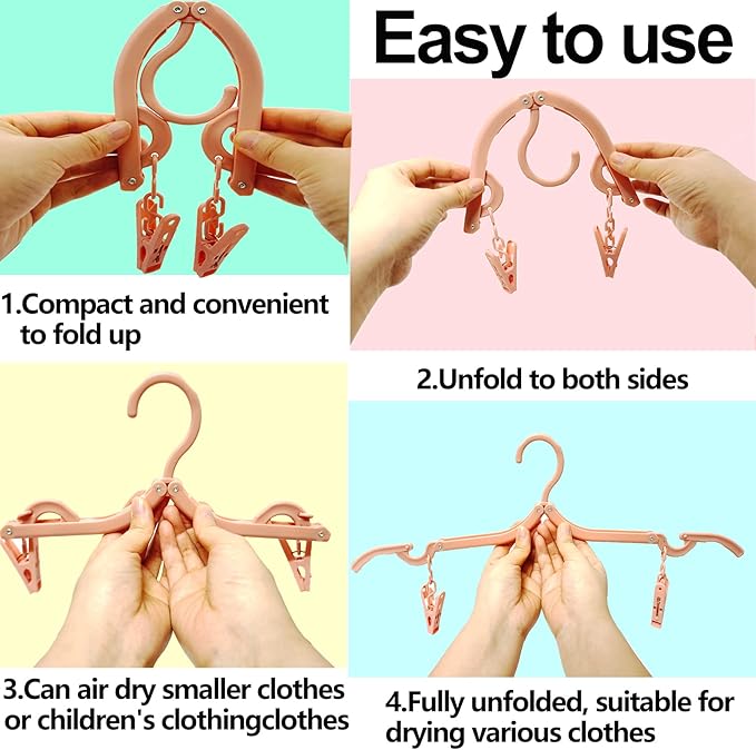24 PCS Foldable Non Slip Plastic Clothes Hangers with Clips - Travel Accessories Drying Rack, 4 Colors