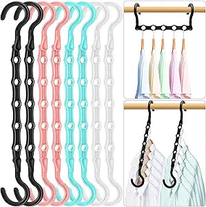 Apartment Essentials for First Apartment: Each closet organizer system has 5 enclosed holes, different from open slots of other hangers space saving, enclosed holes design can protect the hanger from falling. And compared with the metal magic hanger, our closet storage hanger won't rust and no sharp edges, each closet storage hanger with smoothed edge, so your hand and clothes won't be hurt, can be at ease use at home or college dorm room essentials