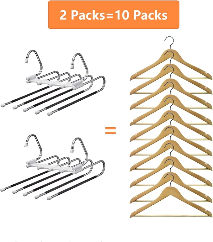 【Closet organization】No need to install, ready to use.Our closet organizers and storage system pants rack hanger are made of durable stainless steel and ABS plastic, sturdy while lightweight. They are strong enough even if your pants are oversized or heavy duty and won't be easy to be out of shape.