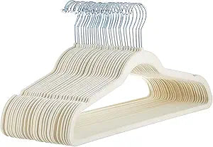 Slim, Velvet, Non-Slip Suit Clothes Hangers, Ivory/Beige- Pack of 30